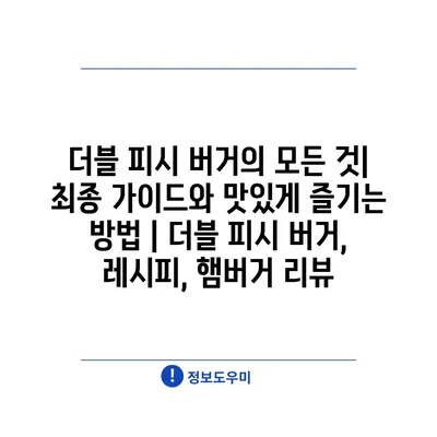 이 설명서를 통해 더블 피시 버거의 매력을 한껏 느껴보세요! 맛있는 레시피와 다양한 노하우를 통해 집에서도 손쉽게 즐길 수 있습니다.