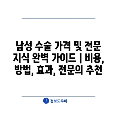 남성 수술 가격 및 전문 지식 완벽 설명서 | 비용, 방법, 효과, 전연락 추천