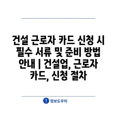 건설 근로자 카드 신청 시 필수 서류 및 준비 방법 공지 | 건설업, 근로자 카드, 신청 절차에 대해 설명하겠습니다.