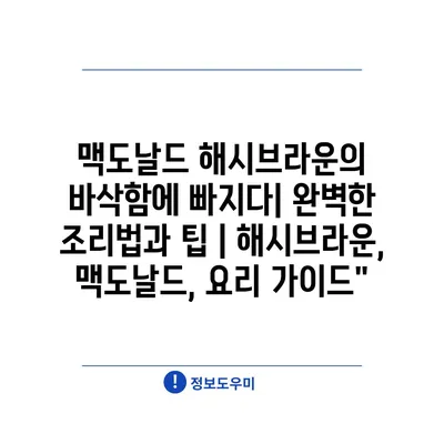 ✅ 맥도날드 해시브라운을 완벽하게 만드는 팁을 지금 바로 알아보세요!