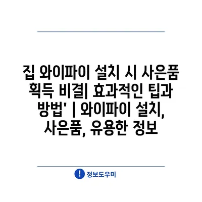 집 와이파이 설치 시 사은품 획득 비결| 효과적인 팁과 방법’ | 와이파이 설치, 사은품, 유용한 정보