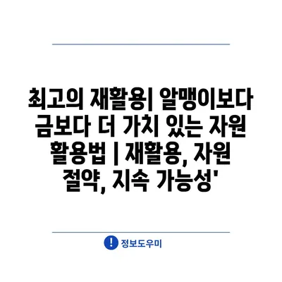 최고의 재활용| 알맹이보다 금보다 더 가치 있는 자원 활용법 | 재활용, 자원 절약, 지속 가능성’