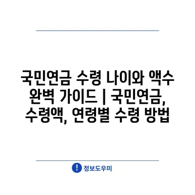 국민연금 수령 나이와 액수 완벽 가이드 | 국민연금, 수령액, 연령별 수령 방법