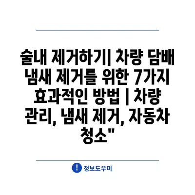 술내 제거하기| 차량 담배 냄새 제거를 위한 7가지 효과적인 방법 | 차량 관리, 냄새 제거, 자동차 청소”