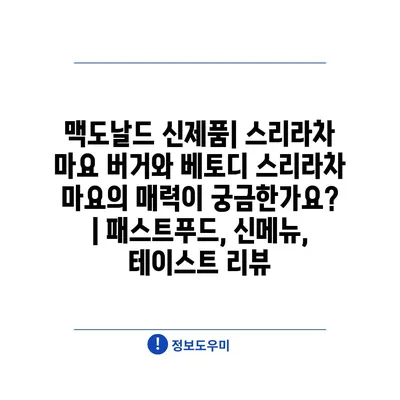 맥도날드 신제품| 스리라차 마요 버거와 베토디 스리라차 마요의 매력이 궁금한가요? | 패스트푸드, 신메뉴, 테이스트 리뷰