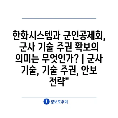한화시스템과 군인공제회, 군사 기술 주권 확보의 의미는 무엇인가? | 군사 기술, 기술 주권, 안보 전략”