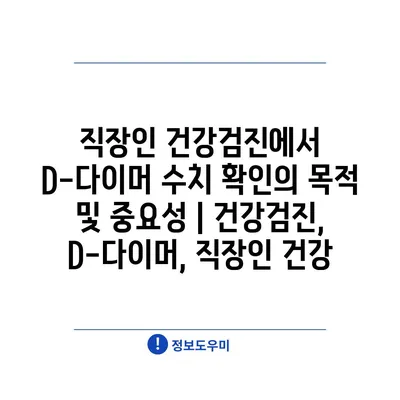 직장인 건강검진에서 D-다이머 수치 확인의 목적 및 중요성 | 건강검진, D-다이머, 직장인 건강