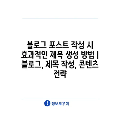 블로그 포스트 작성 시 효과적인 제목 생성 방법 | 블로그, 제목 작성, 콘텐츠 전략