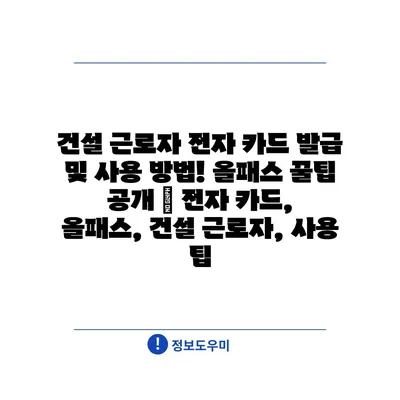 건설 올패스 전자카드의 새로운 보안 시스템과 혜택 분석 | 보안, 기술, 구축 관리