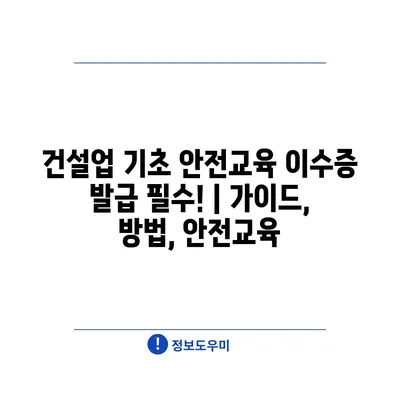 건설업 기초 안전교육 이수증 발급 필수! | 가이드, 방법, 안전교육
