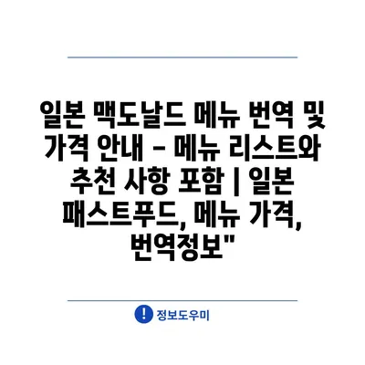 일본 맥도날드 메뉴 번역 및 가격 안내 – 메뉴 리스트와 추천 사항 포함 | 일본 패스트푸드, 메뉴 가격, 번역정보”