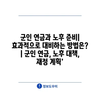 군인 연금과 노후 준비| 효과적으로 대비하는 방법은? | 군인 연금, 노후 대책, 재정 계획’