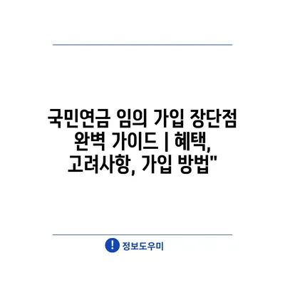 국민연금 임의 가입 장단점 완벽 가이드 | 혜택, 고려사항, 가입 방법”