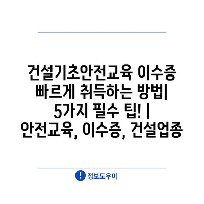 건설기초안전교육 이수증 빠르게 취득하는 방법| 5가지 필수 팁! | 안전교육, 이수증, 건설업종