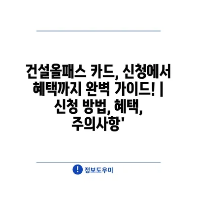 건설올패스 카드, 신청에서 혜택까지 완벽 가이드! | 신청 방법, 혜택, 주의사항’
