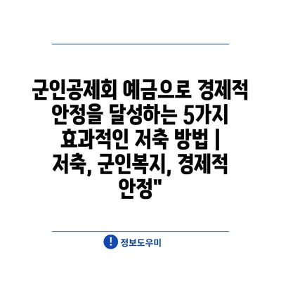 군인공제회 예금으로 경제적 안정을 달성하는 5가지 효과적인 저축 방법 | 저축, 군인복지, 경제적 안정”