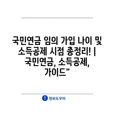 국민연금 임의 가입 나이 및 소득공제 시점 총정리! | 국민연금, 소득공제, 가이드”