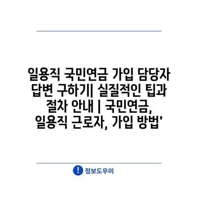 일용직 국민연금 가입 담당자 답변 구하기| 실질적인 팁과 절차 안내 | 국민연금, 일용직 근로자, 가입 방법’