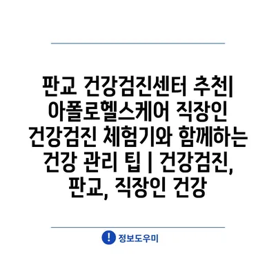 판교 건강검진센터 추천| 아폴로헬스케어 직장인 건강검진 체험기와 함께하는 건강 관리 팁 | 건강검진, 판교, 직장인 건강