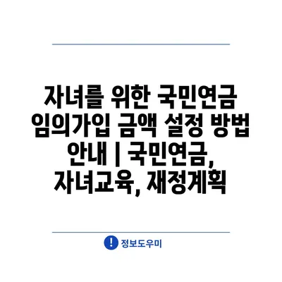 자녀를 위한 국민연금 임의가입 금액 설정 방법 안내 | 국민연금, 자녀교육, 재정계획