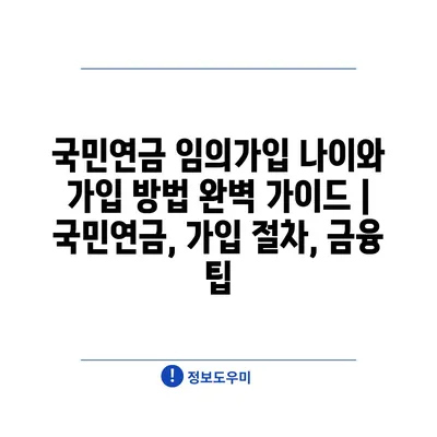 국민연금 임의가입 나이와 가입 방법 완벽 가이드 | 국민연금, 가입 절차, 금융 팁