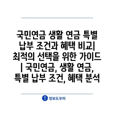 국민연금 생활 연금 특별 납부 조건과 혜택 비교| 최적의 선택을 위한 가이드 | 국민연금, 생활 연금, 특별 납부 조건, 혜택 분석